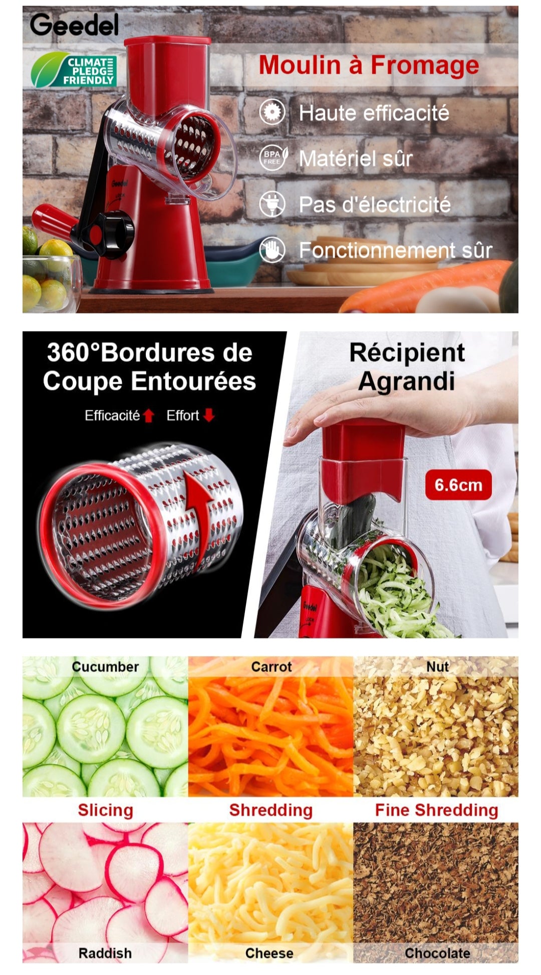 🔄 Ultra polyvalente : Carottes, oignons, pommes de terre, fromage, arachides… elle râpe tout avec brio.