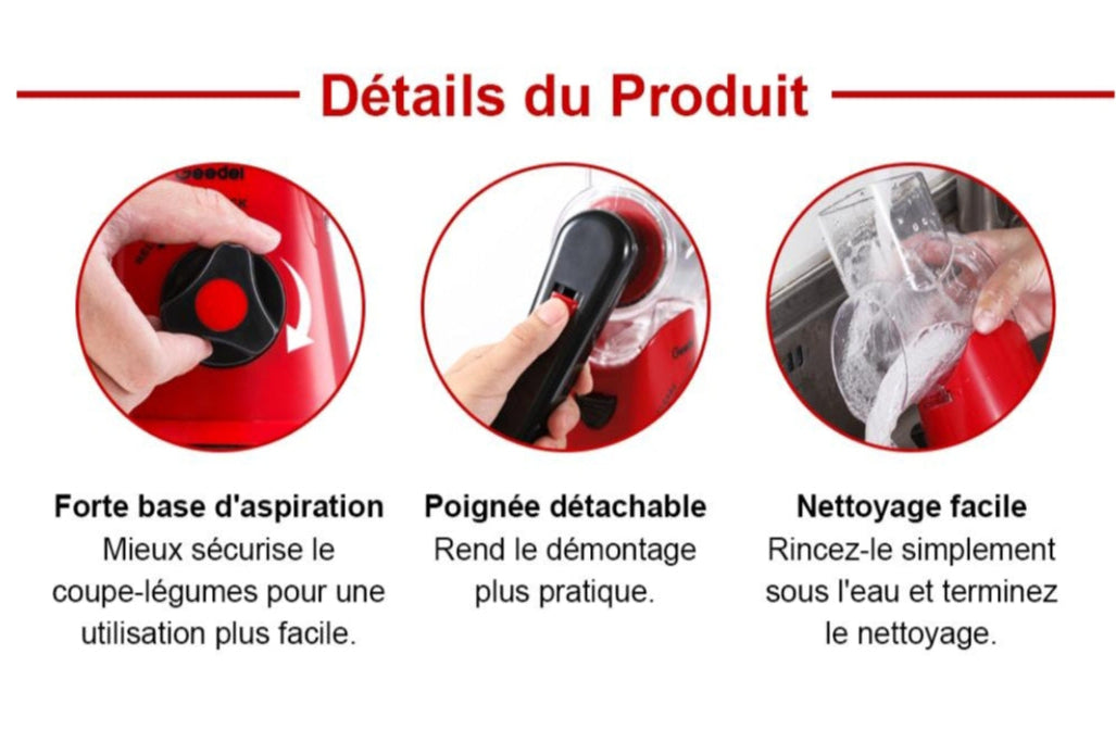 ⏱️ Gagnez du temps : Fini les longues préparations, vos légumes sont prêts en quelques secondes.
